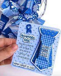 Todos de azul + café da manhã + entrega de laço azul + painel com frases de incentivo à prevenção.